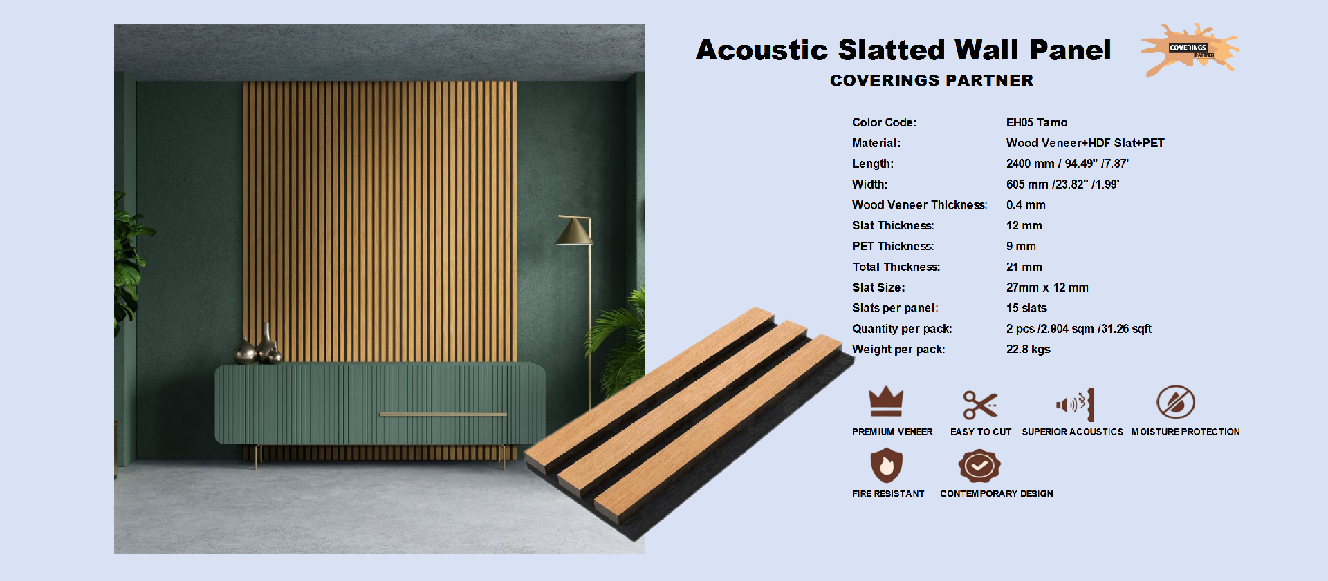 Which is specially designed to combine the benefits of aesthetic appeal and provide noise insulation. These top-of-the-line soundproofing slatted wall panel is constructed from high-density felt PET backing and slats of sound-absorbing material to improve the acoustics of a room, and reduce unwanted noise, to create a more comfortable and pleasant environment.